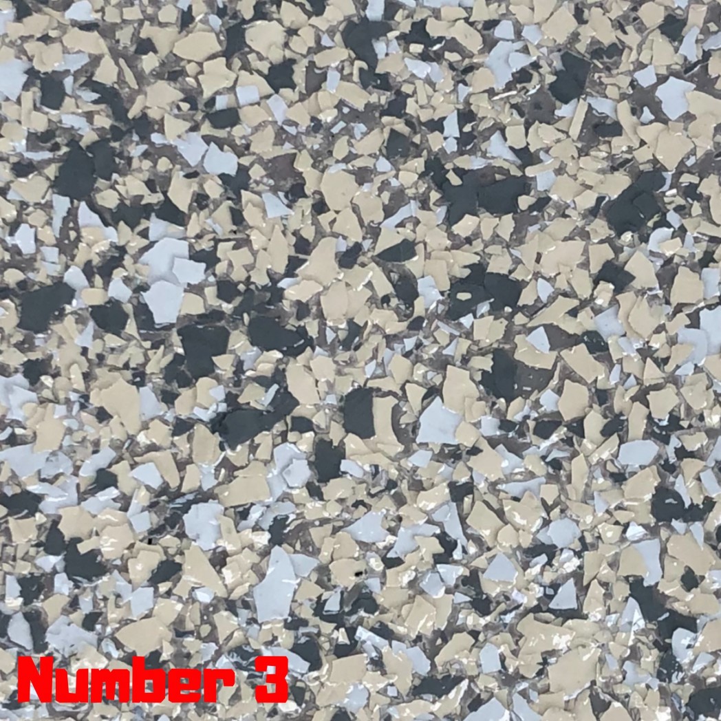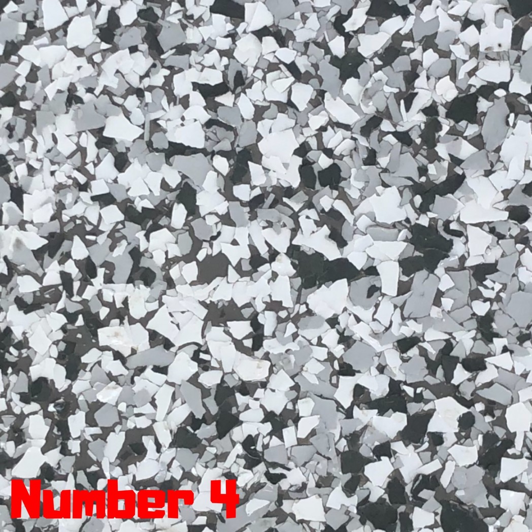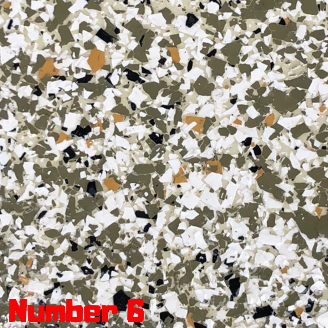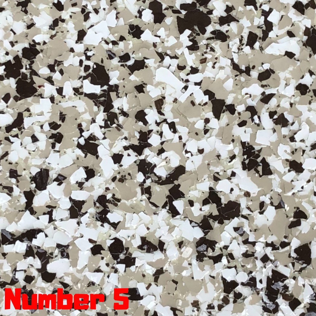 Premium NuLook epoxy applied with your chosen colour and flake blend.